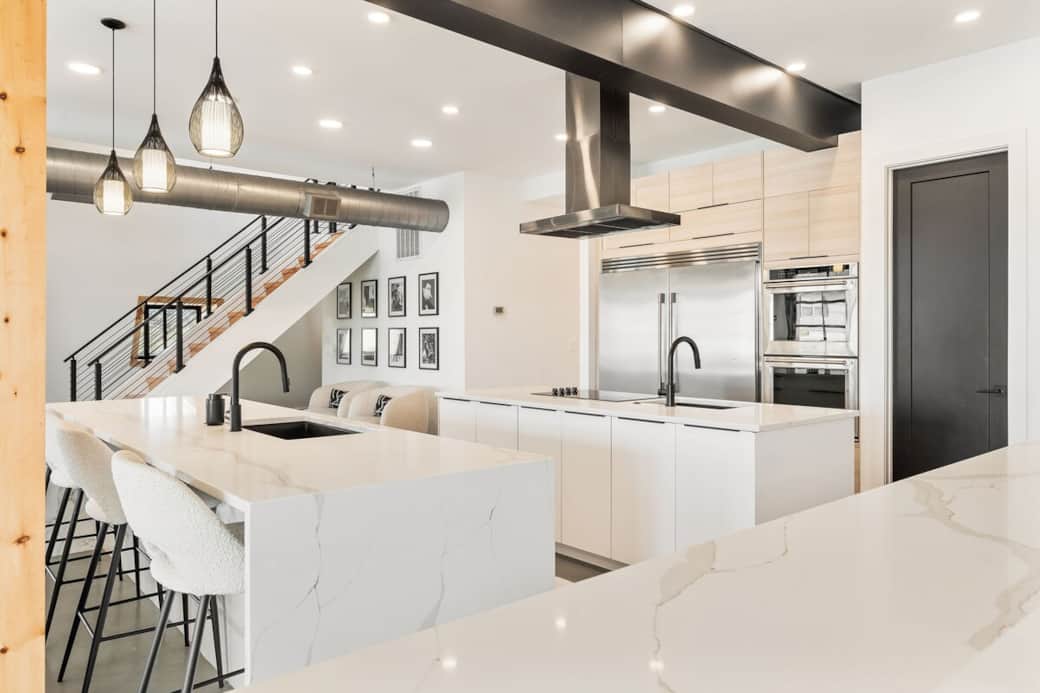 Large open kitchen into the living room area.